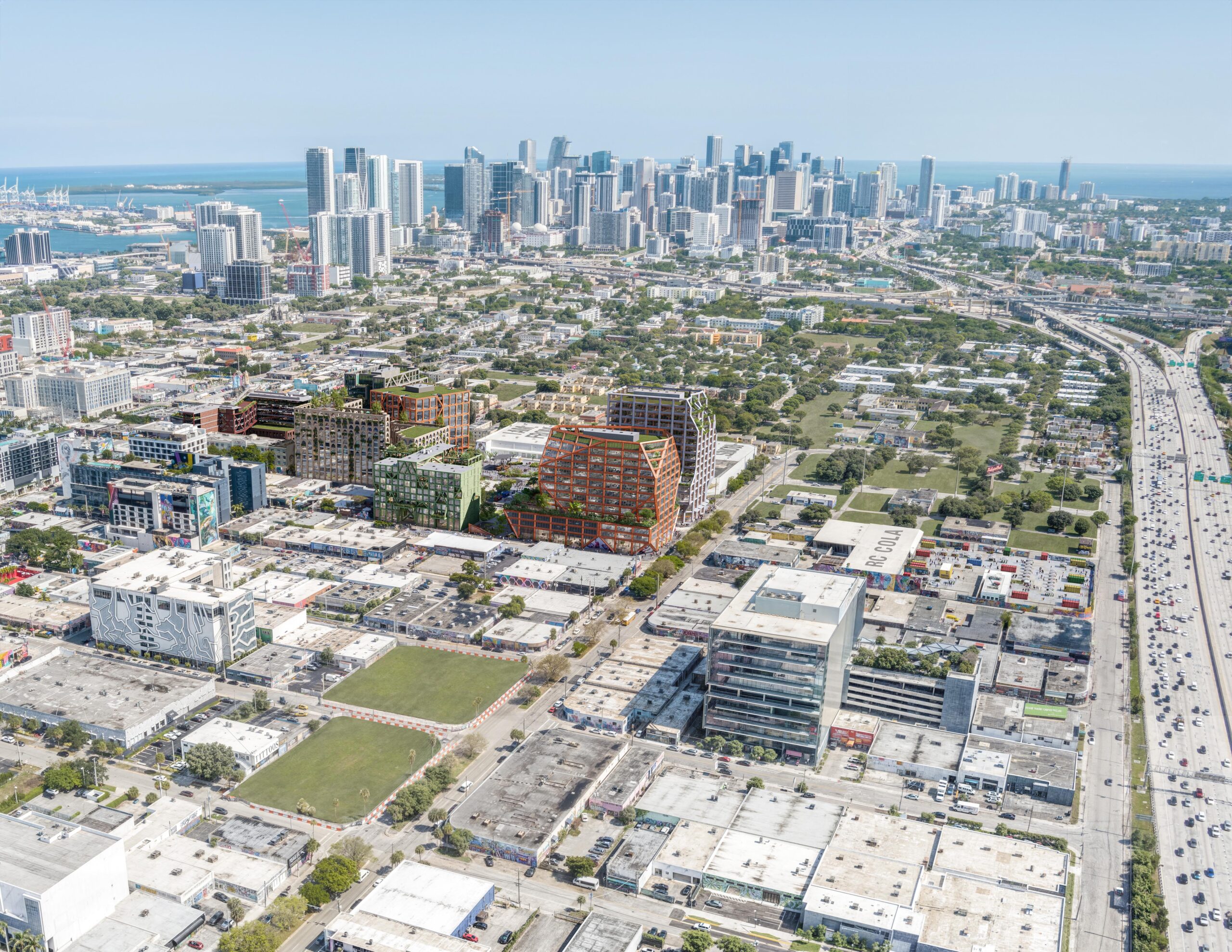 The Wynwood Incubator, located in the vibrant Wynwood Arts District, is a 450,000-square-foot, 12-story Class-A office building. This cutting-edge structure exemplifies contemporary design and sustainability, seamlessly integrating with the artistic ambiance of the district. The tower leverages its prime location to enhance the public space’s vibrancy, providing stunning views and moments of connection with nature. Advanced green technologies are a cornerstone of its design, setting a new standard for eco-friendly office spaces in the area.